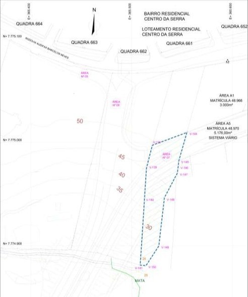 Art. 1º Declara de Utilidade Pública, para fins de desapropriação, uma área medindo 2.689,80m² (dois mil, seiscentos e oitenta e nove metros quadrados e oitenta decímetros quadrados), localizada no Bairro Residencial Centro da Serra, Distrito Sede, conforme planta em Anexo.