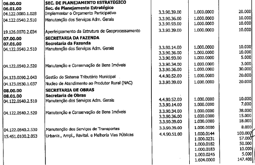Art. 2° Para efeito das suplementações constante no Artigo anterior, ficam anuladas as dotações orçamentárias, indicada no anexo II.