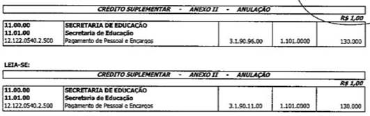 No Decreto n° 1.828/2017, publicado no DOM/ES do dia 24 de outubro de 2017, no Crédito Suplementar – Anexo II – Anulação.
