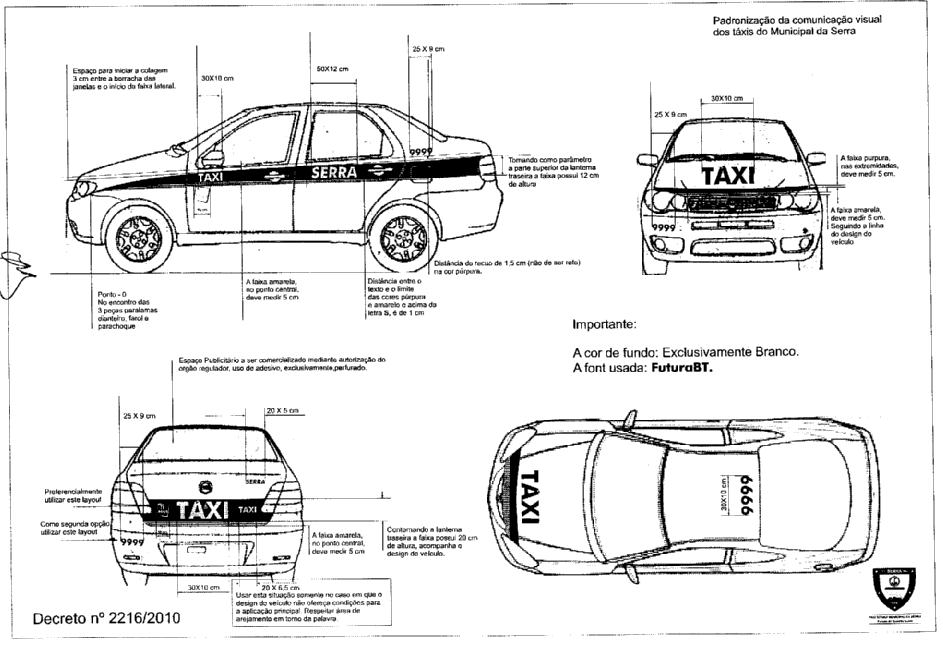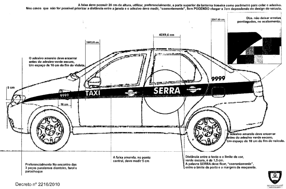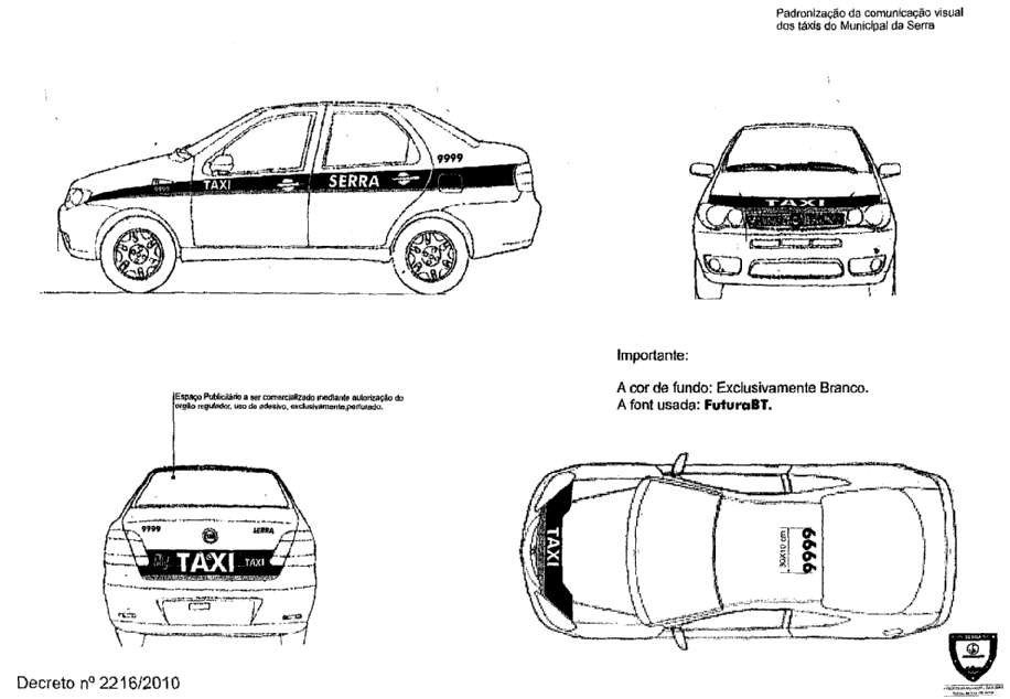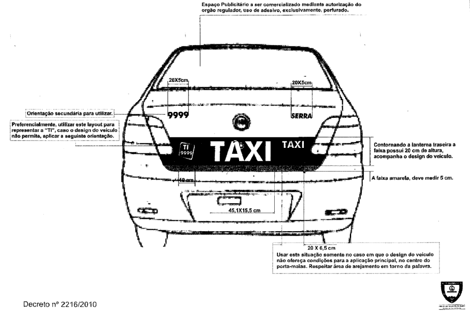 FIXA LAYOUT DE PROGRAMAÇÃO VISUAL NOS VEÍCULOS A TAXÍMETRO, APLICAÇÃO