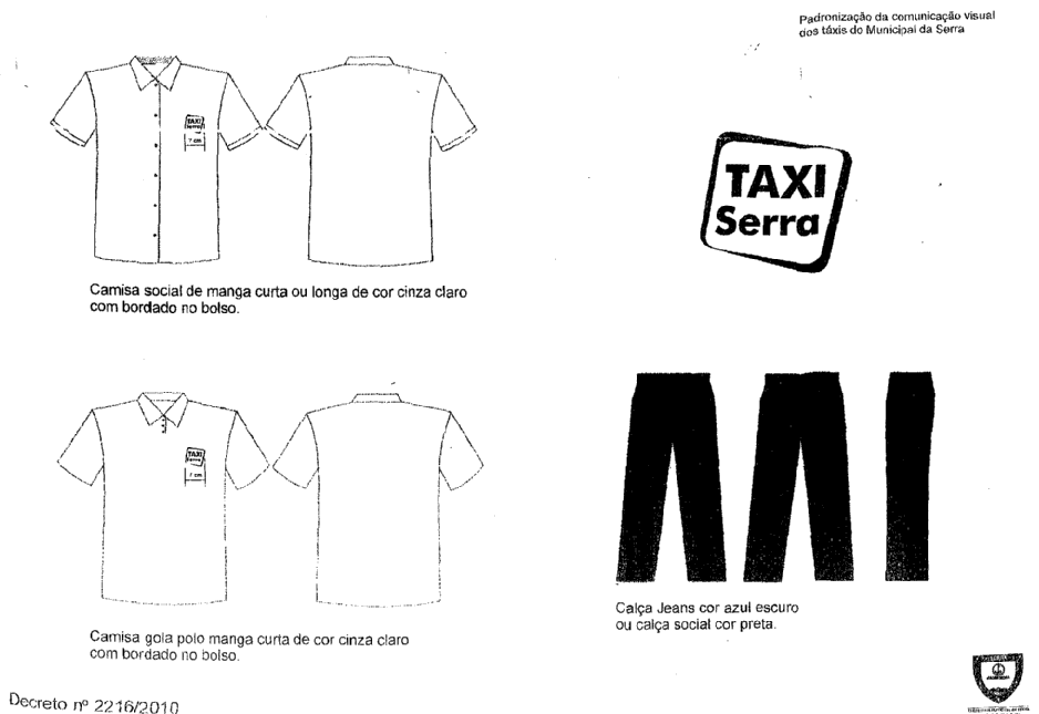 visual da frota de carros a taxímetro do município da Serra e dar outras