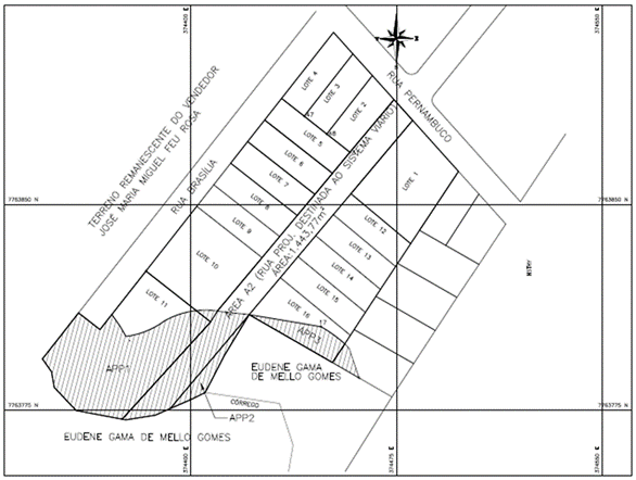 II - “Área A2”, de 1.443,77m², a ser doada ao Município da Serra para ser incorporada ao sistema viário existente.