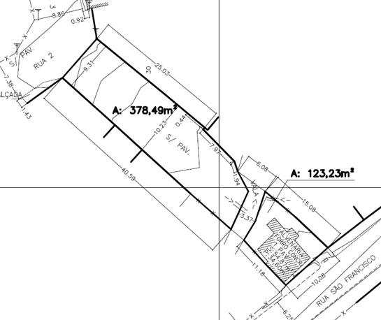 Art. 1º Declara de Utilidade Pública, para fins de desapropriação, uma área de terreno totalizando 501,72m² e eventuais benfeitorias existentes no terreno, referente a 2 imóveis, sendo o primeiro localizado na Rua São Francisco, medindo 123,23m², inscrição imobiliária municipal nº 001.2033.0716.001, de posse de Amirton Genuíno dos Reis e o segundo medindo 378,49m², de posse de Adão Luiz Alves de Almeida.