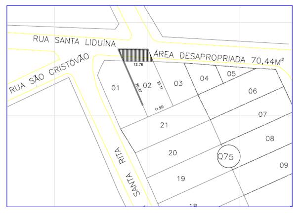 Art. 1º Declara de Utilidade Pública para fins de desapropriação uma área de terreno medindo 70,44m², referente ao Lote nº 02 da Quadra 75, Loteamento São Francisco, localizado à Rua São Cristovão, no Bairro São Francisco, Distrito de Nova Almeida, Serra - ES, de propriedade do Sr. João Evangelista de Paiva, matriculado no Cartório de Registro Geral de Imóveis do 1º Ofício da 1ª Zona da Serra, sob nº 34.125, livro 2, conforme Anexo Único.