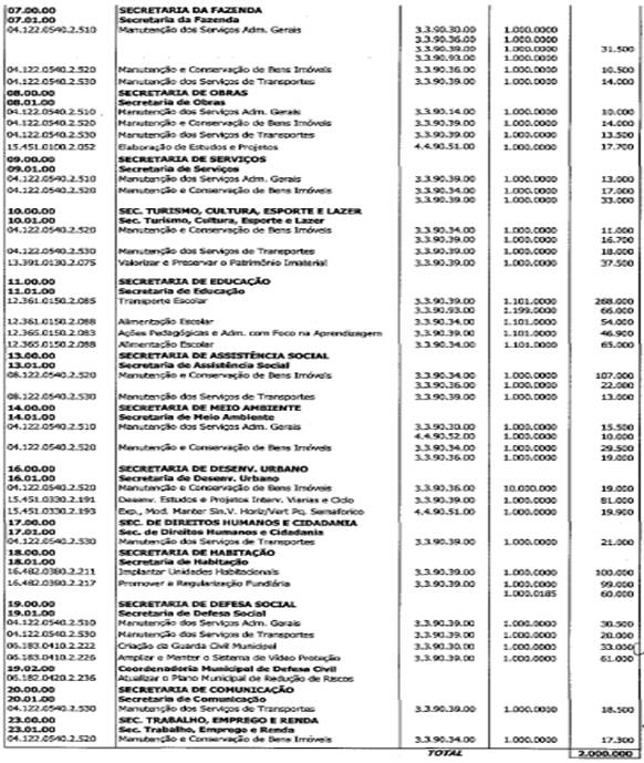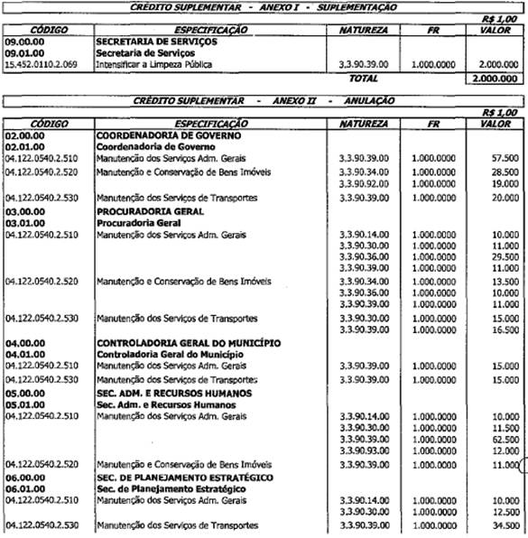 Art. 2° Para efeito das suplementações constante no Artigo anterior, ficam anuladas as dotações orçamentárias, indicada no