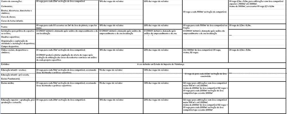 *** O número de vagas exigidas deverá ser contemplado na proporção de 80% para veículos de passeio e 20% para utilitários.