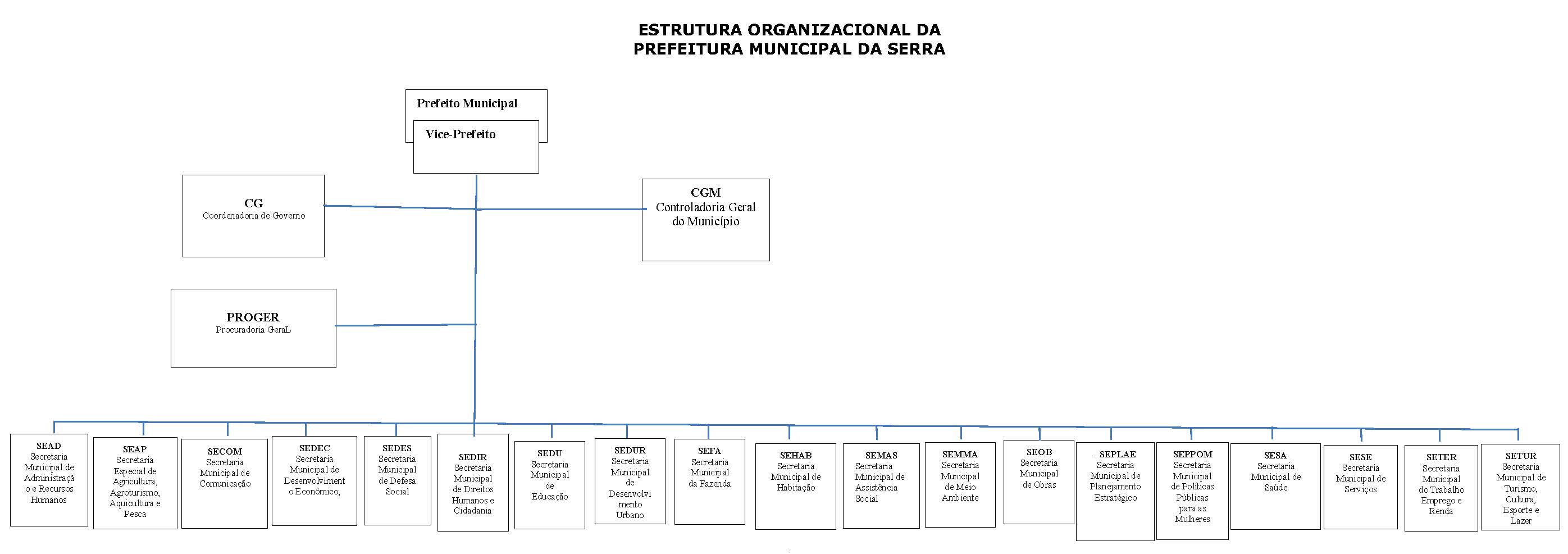 DISPÕE SOBRE A ESTRUTURA ORGANIZACIONAL DO PODER EXECUTIVO DO MUNICÍPIO DE SERRA E DÁ OUTRAS PROVIDÊNCIAS.